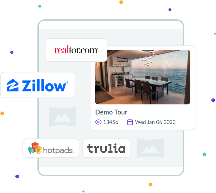 Automatically publish your tours with your listings on popular real estate sites. (Included with Residential Virtual Tour Plan)
